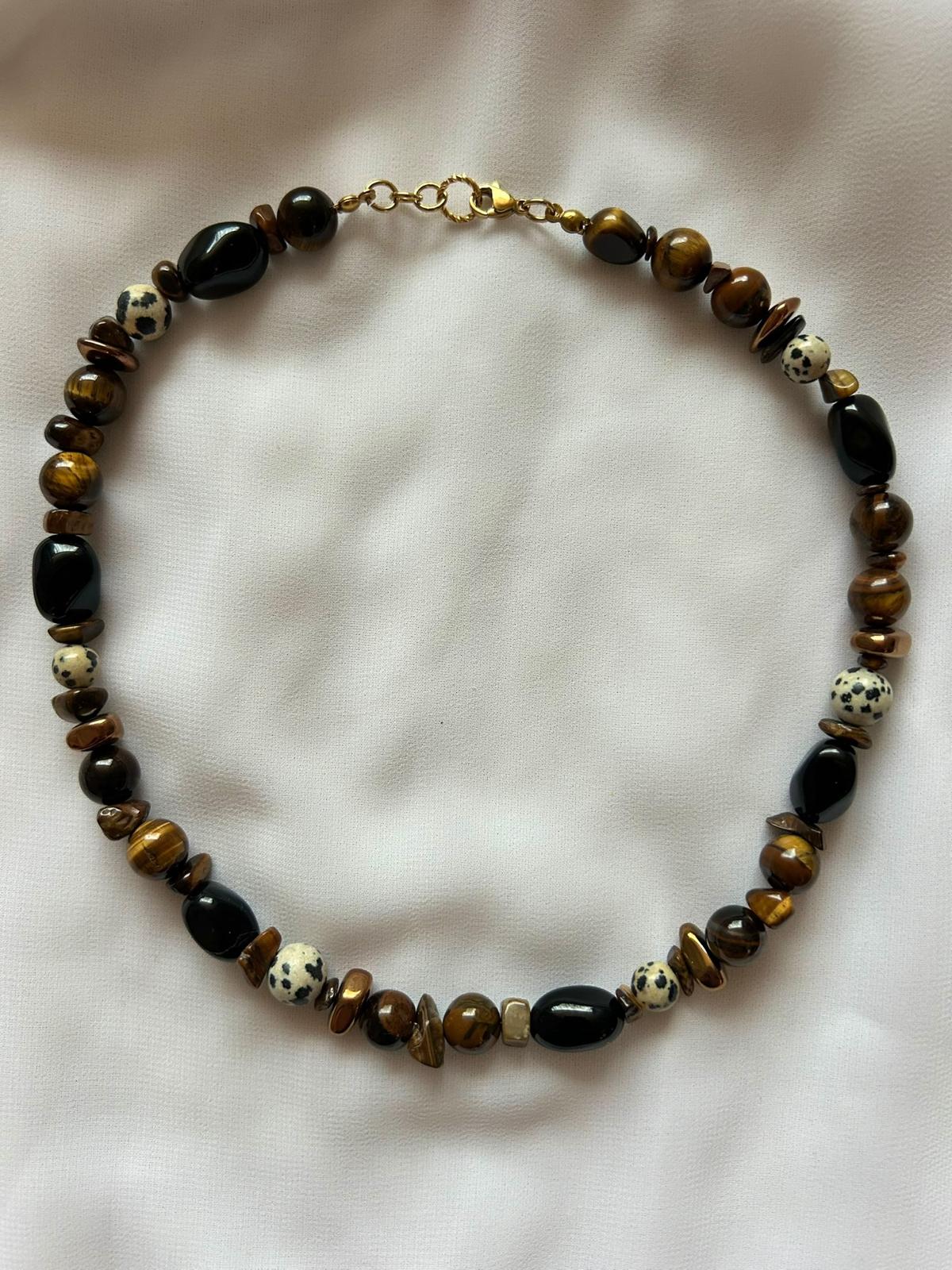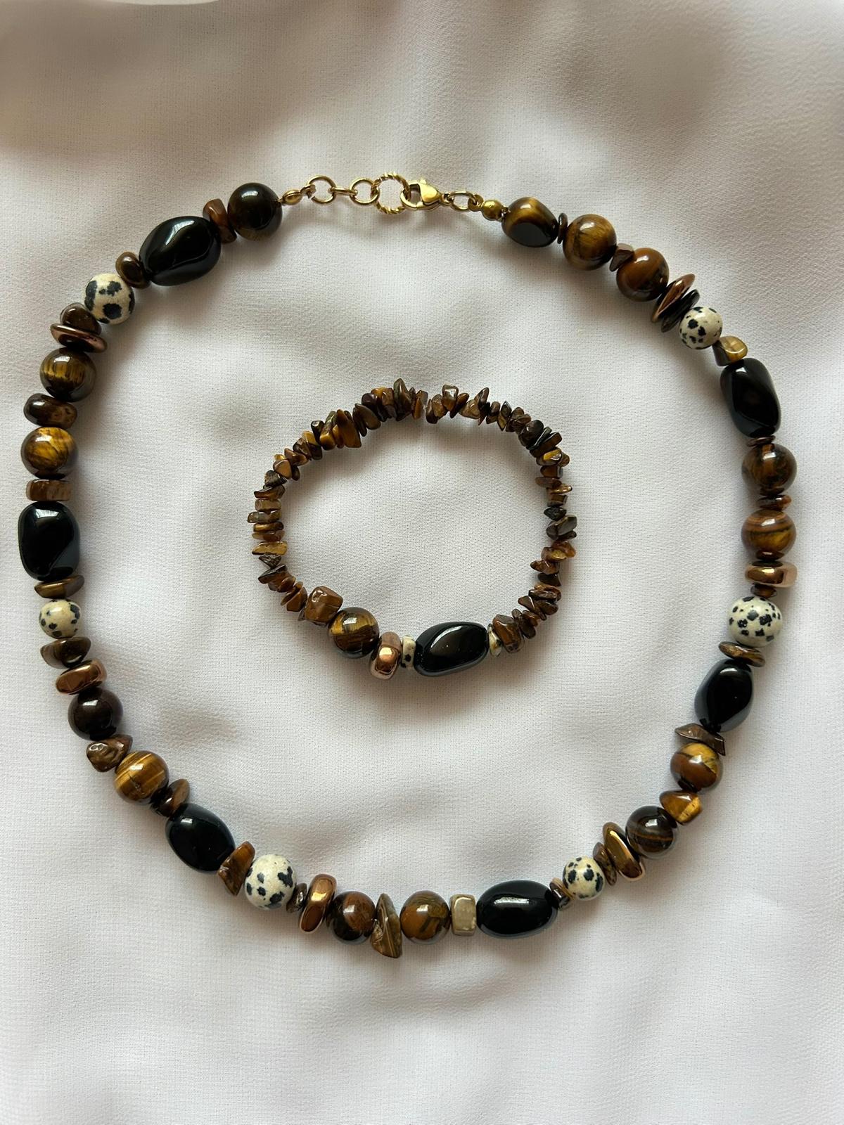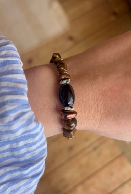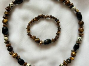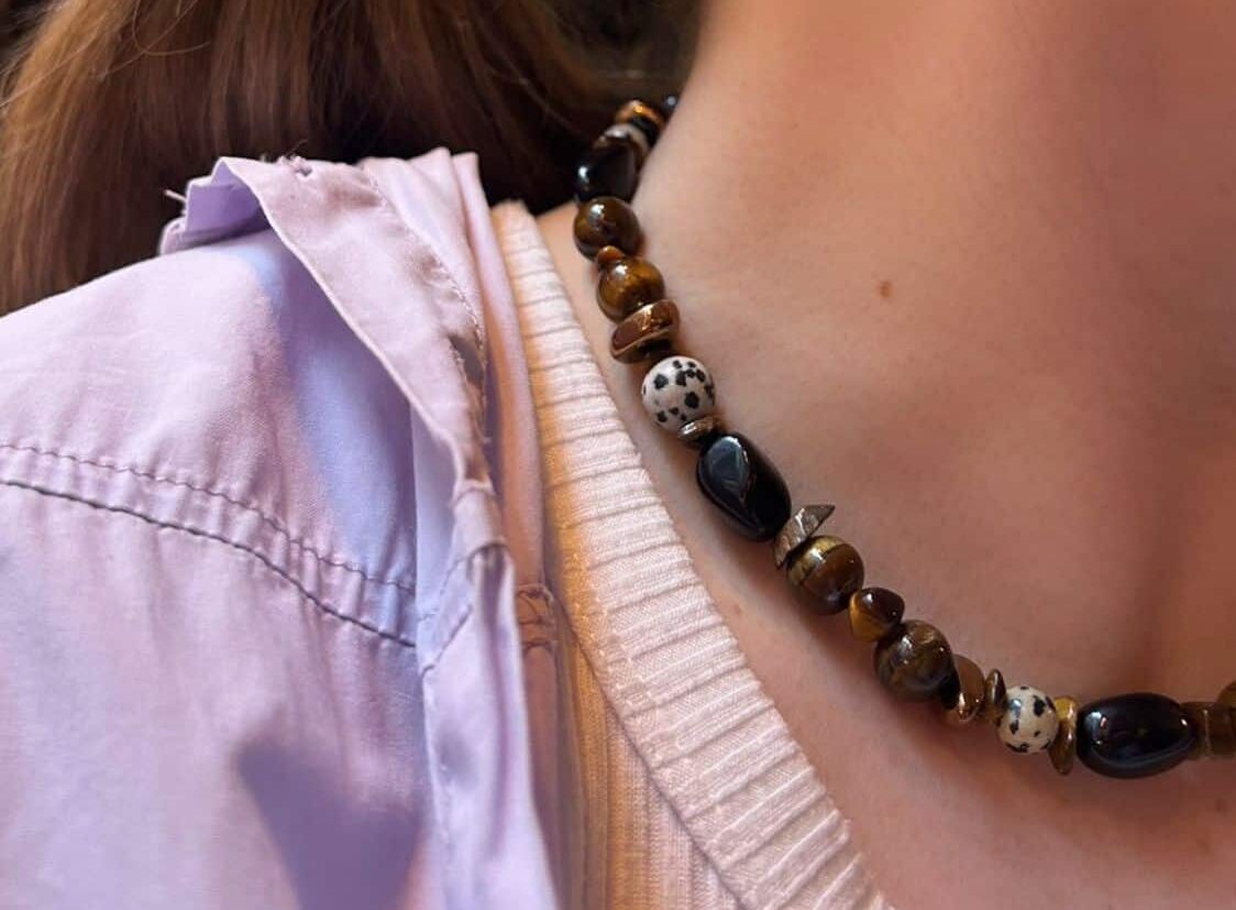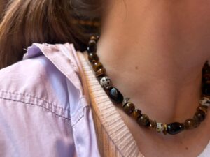 Kaksosen horoskooppikorusetti, jossa on käytetty upeaa ruskeaa tiikerinsilmää. Tiikerinsilmää pidetään rohkeuden ja selkeyden kivenä, ja sen sanotaan tukevan kaksosten uteliasta, eloisaa luonnetta. Kivi auttaa keskittymään olennaiseen ja tekemään päätöksiä luottavaisesti kaiken liikkeen ja uusien ideoiden keskellä. Geminit; tämä, jos joku on teidän valinta!
