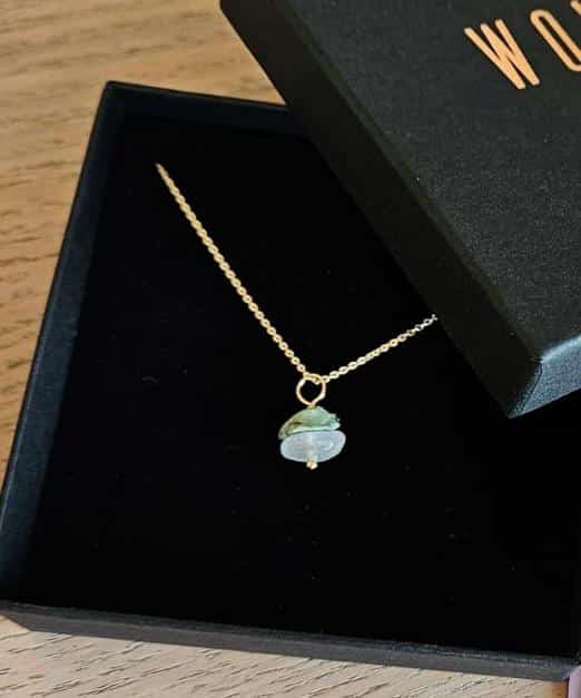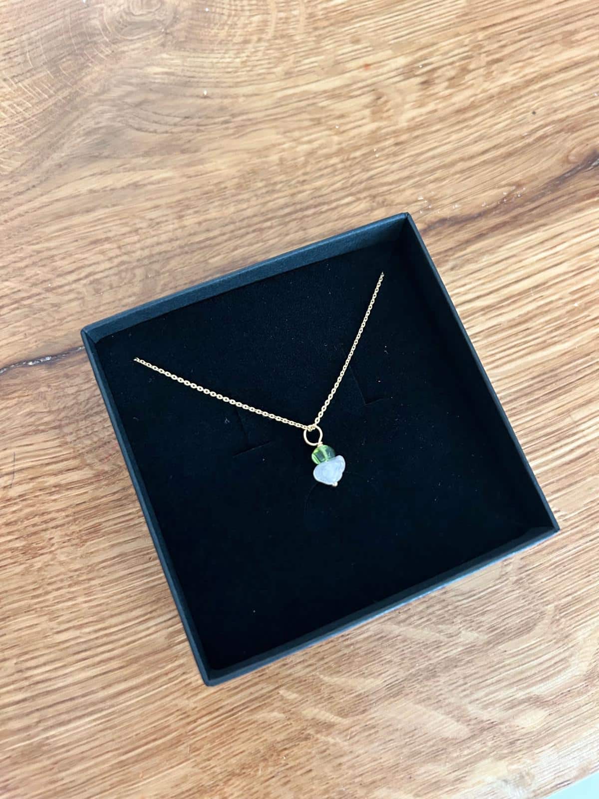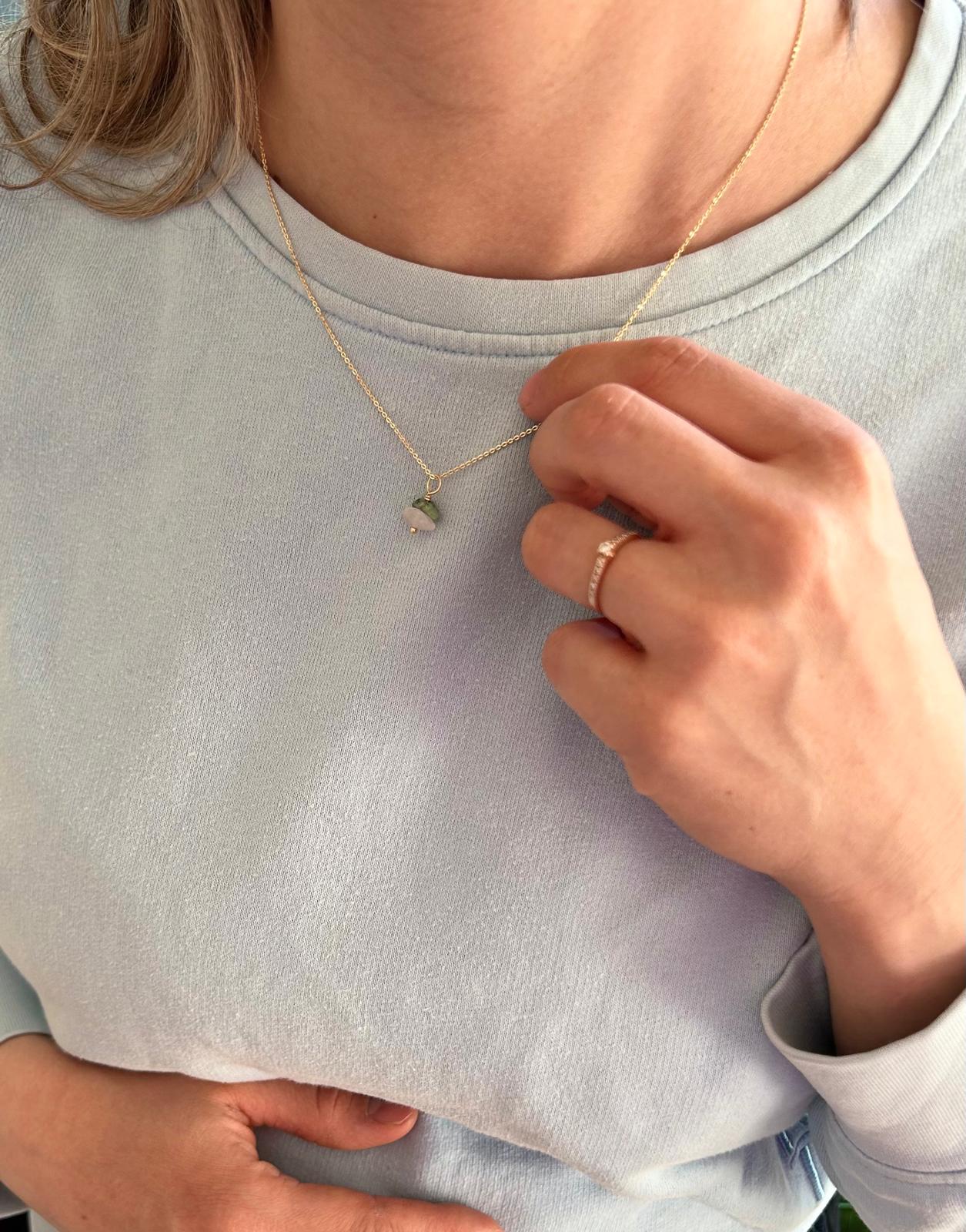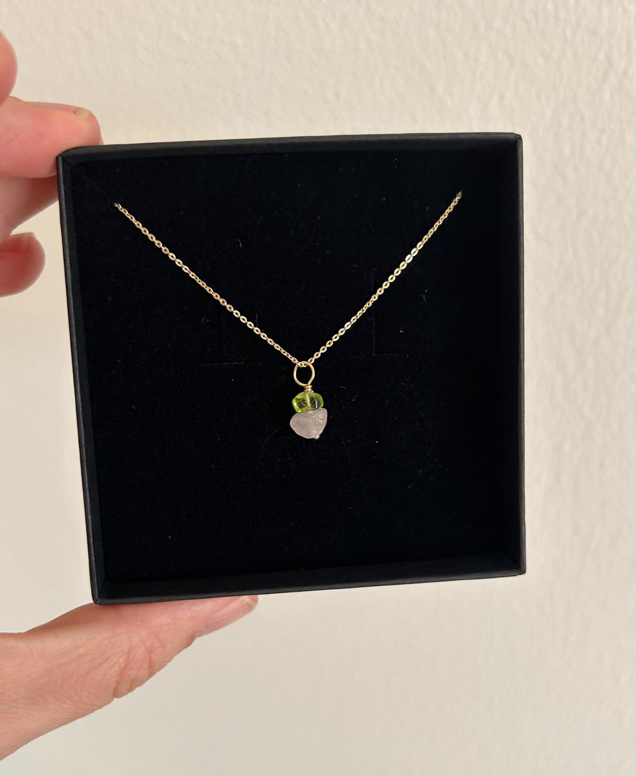 Mainio idea baby shower-lahjaksi! Omani halusin ehdottomasti ottaa myös mukaan synnytykseen, joten tästä on muodostunut tärkeä ja merkityksellinen kaulakoru itselle. Tämä kestää aikaa ja kivet on valittu huolella sopimaan keskenään.