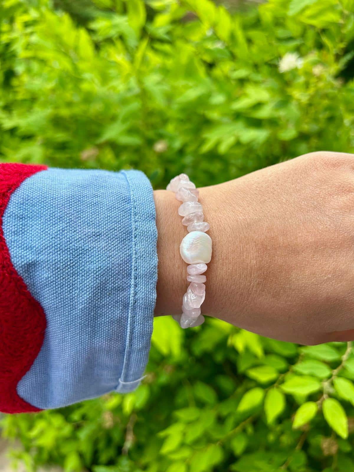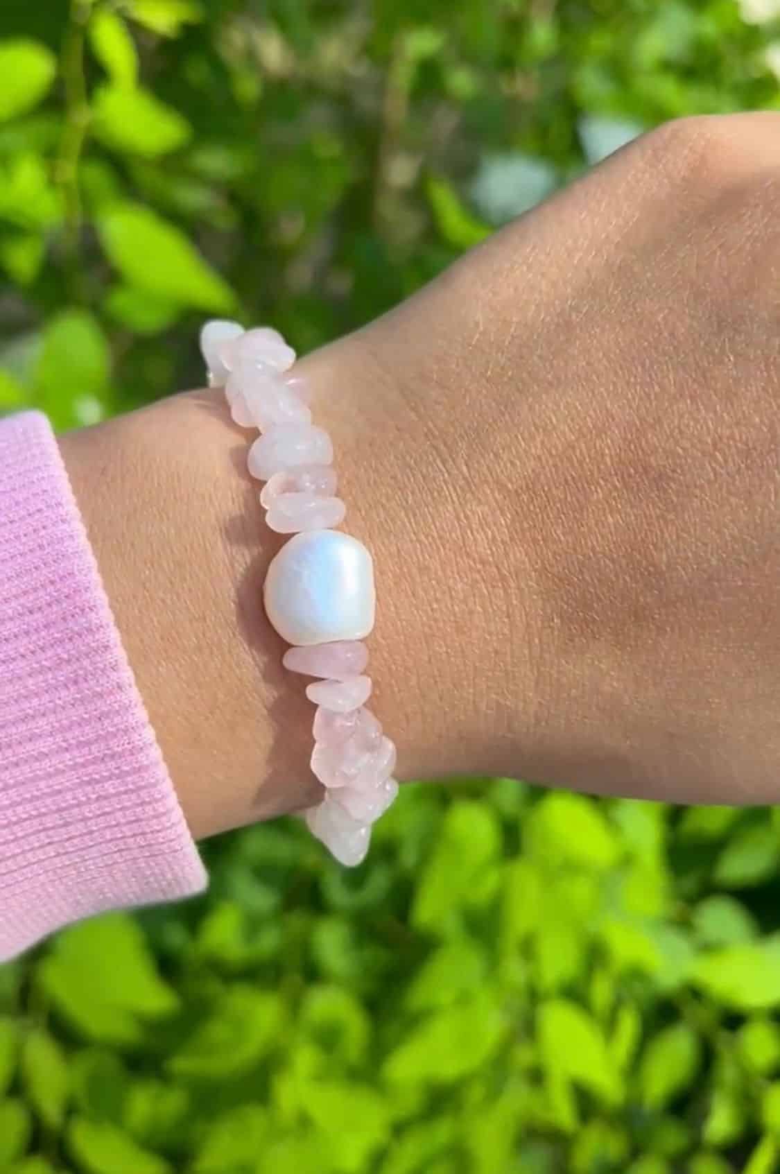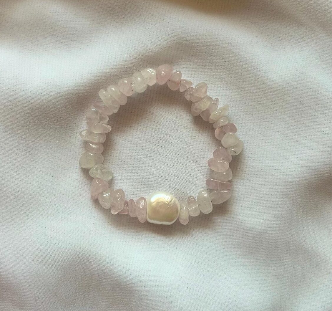 Time to LOVE -käsikorun hempeä ruusukvartsi säteilee rakkautta sen kaikissa muodoissa. Tämä käsikoru symboloi sitä, missä muodossa haluat keskittyä rakkauden energiaan omassa arjessasi.